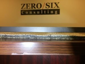 Figure 2: Modified Asphalt pool at Roll Base from Excess Heat during Application.